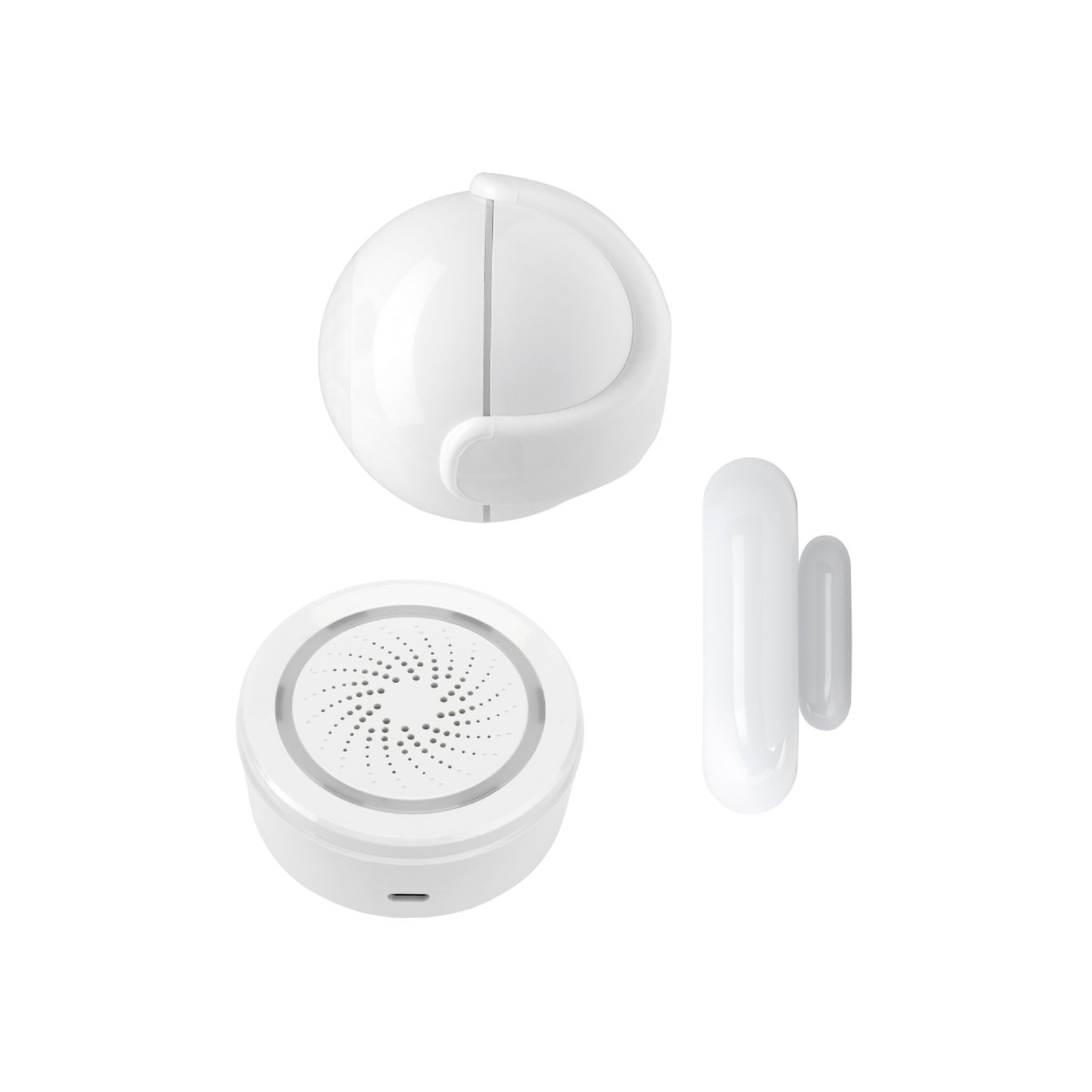 The smart Siren Alarm allows you to receive alerts and control settings from anywhere. The Siren/Alarm produces a powerful 90dB siren plus a visible blue indicator light when triggered to deter intruders. No cables, so you can place it anywhere in your home. Motion sensor Detects movement within a range of 4-6m. The Smart Reed Switch activates once the door or window is opened/closed.